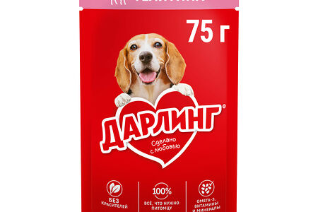 Влажный корм ДАРЛИНГ для взрослых собак, кусочки с телятиной в подливе доставка