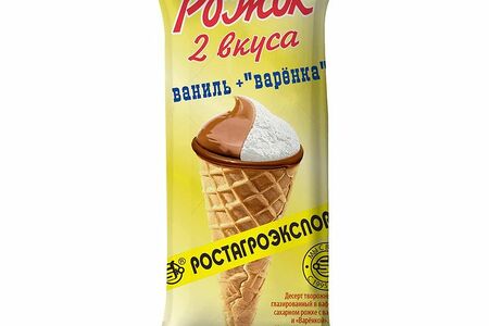 Десерт творожный Ростагроэкспорт глазированный в вафельном рожке с ванилью и варёнкой 15% доставка