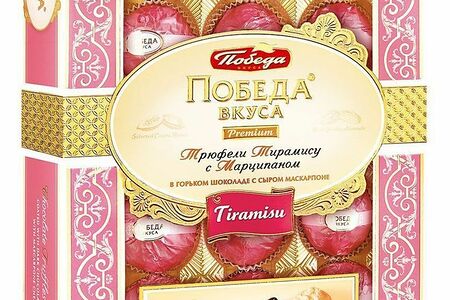 Конфеты Победа вкуса Трюфели Тирамису с Марципаном в горьком шоколаде и маскарпоне доставка