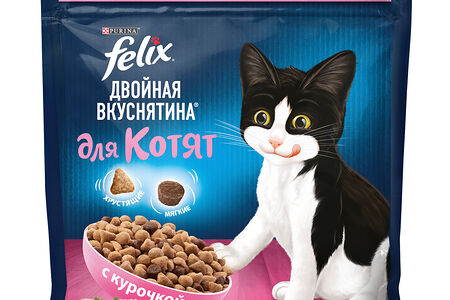 Сухой корм Felix® Двойная Вкуснятина для котят до года, с курочкой, Пакет, 600 г доставка