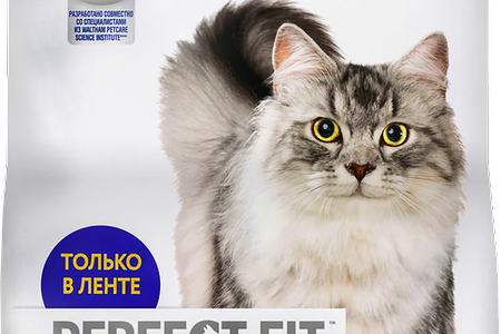 Корм сухой для взрослых кошек PERFECT FIT с лососем, при чувствительном пищеварении доставка