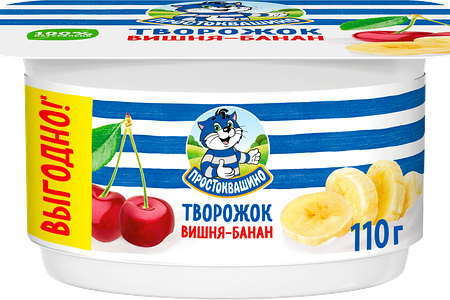 Продукт творожный Простоквашино вишня-банан 3.6% доставка