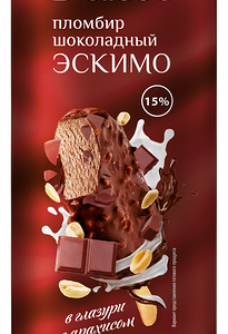 Мороженое Delisse Пломбир шоколадный в глазури с арахисом 15%, без змж, эскимо доставка