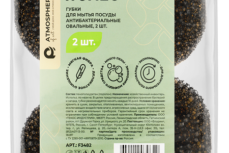 Губки для мытья посуды ATMOSPHERE Of art антибактериальные, овальные, Арт. F3482, 2шт доставка