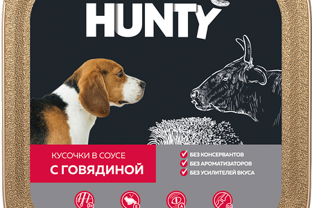 Корм консервированный для взрослых собак HUNTY кусочки в соусе с говядиной доставка