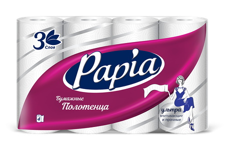 Бумажные полотенца Papia 4 рулона 3 слоя доставка