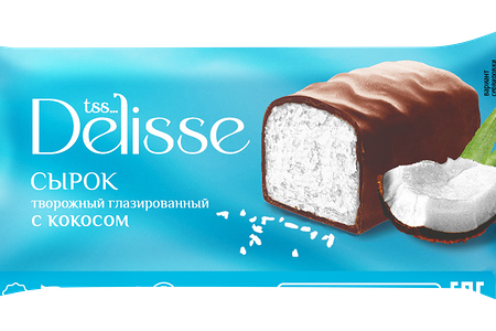 Сырок творожный глазированный DELISSE с кокосом 26%, без змж, 40г доставка