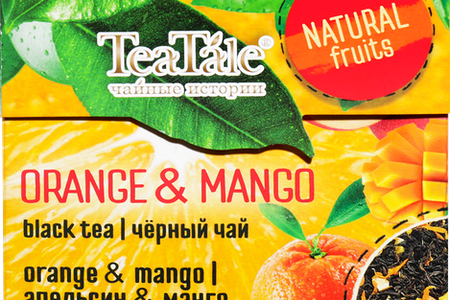 Чай черный TEATALE Сочные фрукты с ароматом апельсина и манго – это невероятный по вкусу купаж черного чая высокого качества с добавлением натуральных кусочков спелого манго, цедры апельсина и лепестков календулы. Красивый и полезный чай обладает в горячем виде согревающим эффектом, что важно в холодную и дождливую погоду, а в холодном виде прекрасно утолит жажду в летний зной. Такой цитрусовый чай придется по вкусу даже самым истинным гурманам.