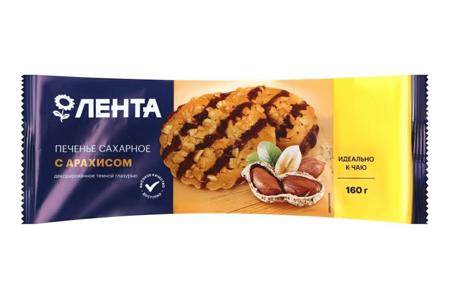 Печенье сахарное ЛЕНТА с арахисом декорированное темной глазурью доставка