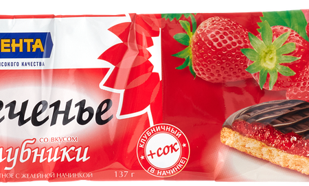 Печенье бисквитное ЛЕНТА с желейной начинкой со вкусом клубники доставка