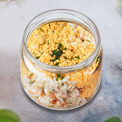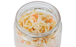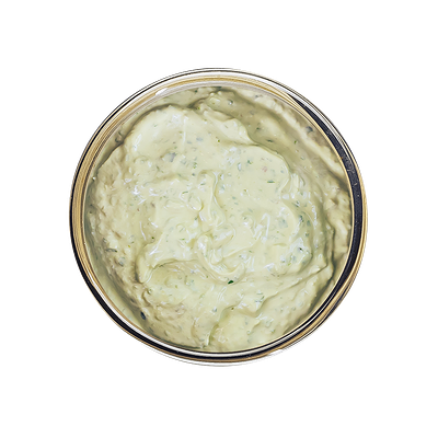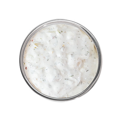 Майонез 67% жирности (масло подсолнечное рафинированное дезодорированное, вода питьевая, сахар, яичный желток, соль, уксус, стабилизатор ксантановая камедь, эфирное масло горчичное, краситель каротины), сметана 20%, огурцы свежие, огурцы соленые, чеснок свежий, горчица зерновая, сахарный песок, зелень укропа, перец черный молотый