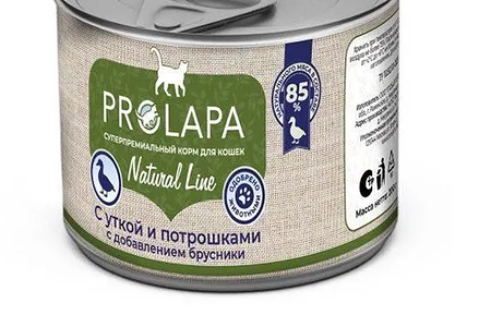 Консервы для кошек Prolapa Natural Line с уткой, потрошками и брусникой 200 г доставка