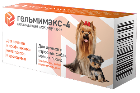 Антигельминтик Apicenna Гельмимакс-4 для щенков и собак мелких пород 2 таб. по 120мг доставка