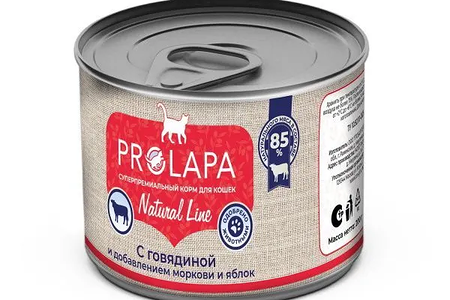 Консервы для кошек Prolapa Natural Line с говядиной, морковью и яблоком 200 г доставка
