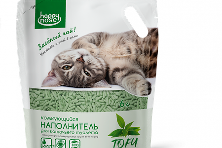 Комкующийся наполнитель для кошачьего туалета Happy Nose Tofu зелёный чай, 6л доставка