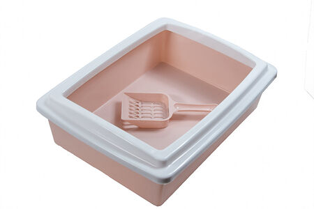 Лоток для кошек пластиковый с бортом +совок, розовый, 38.5х29х12см доставка
