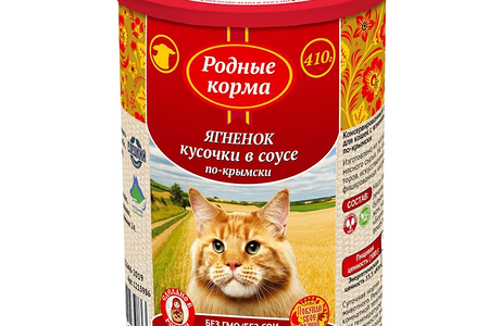 Влажный корм Родные Корма для взрослых кошек, кусочки в соусе по - крымски с ягнёнком, 410 г доставка