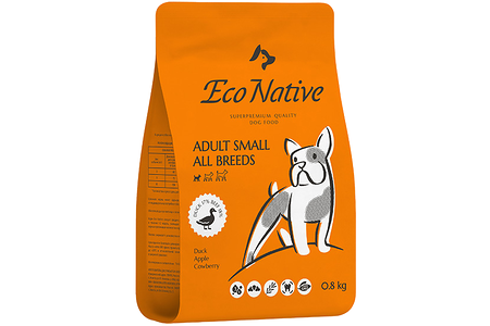 Сухой корм для собак мелких пород Eco Native Duck SUPERPREMIUM из мяса мускусной утки с яблоками и брусникой 800 г доставка