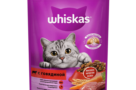 Сухой корм для кошек Whiskas Вкусные подушечки с нежным паштетом Аппетитное ассорти с говядиной доставка