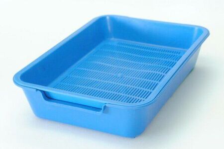 Мини лоток с сеткой для кошек, имеет небольшие бортики и специальную сетку, благодаря чему возможно использование лотка без применения наполнителя для туалетов.