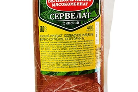 Колбаса варено-копченая Великолукский МК Сервелат Финский доставка