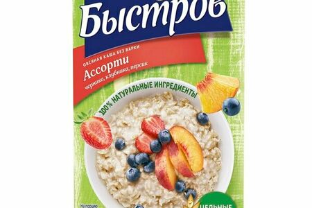 Каша овсяная Быстров Ассорти: черника, клубника, персик без варки, 6×40 г доставка