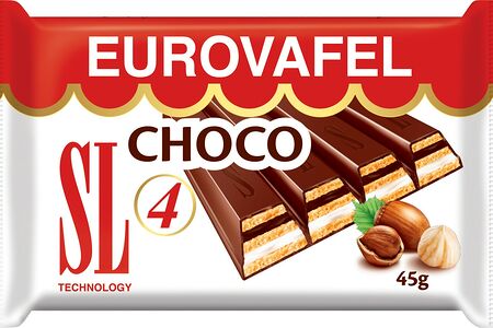 Вафли Eurovafel Choco 4 с какао и молочным кремом доставка