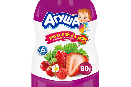 Фруктово-ягодное пюре Агуша Укрепляй-ка Яблоко-Клубника-Земляника-Клюква 80г, с 6 месяцев доставка