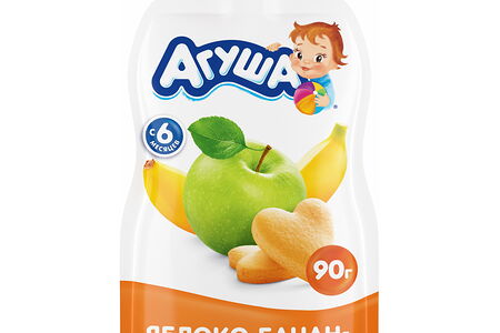 Детское фруктовое пюре Агуша Яблоко-Банан-Печенье в мягкой упаковке, с 6 месяцев, 90г доставка