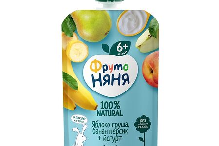 Пюре фруктово-йогуртовое ФрутоНяня яблоко, груша, банан, персик с 6 месяцев 90г, Россия доставка