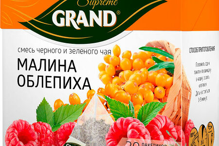 Чай черный и зеленый Grand Supreme малина-облепиха 20пак доставка