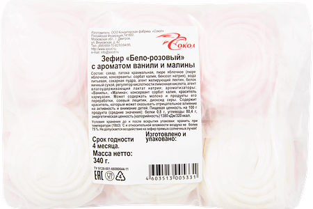 Зефир Сокол бело-розовый с ароматом ванили и малины доставка