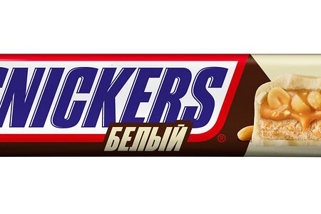 Snickers Белый шоколадный батончик с карамелью, арахисом и нугой, 81г доставка