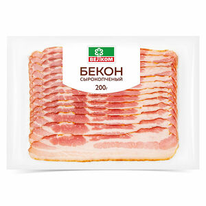 Бекон Великолукский Мк из свинины сырокопченый нарезка доставка