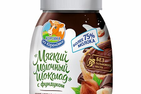 Паста Коровка из Кореновки мягкий молочный шоколад с фундуком-арахисом-миндалём 15% доставка
