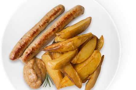 Колбаски М-Кухня с соусом и картофелем доставка