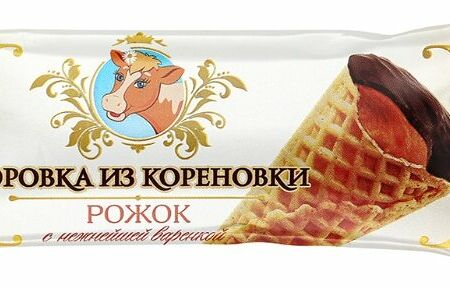 Крем-десерт в вафельном рожке Коровка из Кореновки с нежнейшей варёнкой 19% доставка