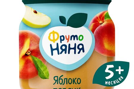 Пюре ФРУТОНЯНЯ из яблок и персиков натуральное для питания детей раннего возраста с 5 месяцев 100г доставка