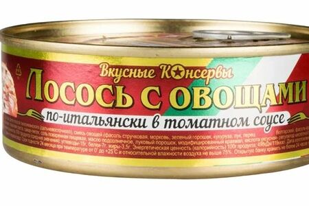Лосось Вкусные консервы по-итальянски с овощами в томатном соуе доставка