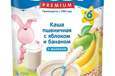 Каша молочная Bebi Premium Пшеничная сухая с яблоком и бананом с 6 месяцев доставка