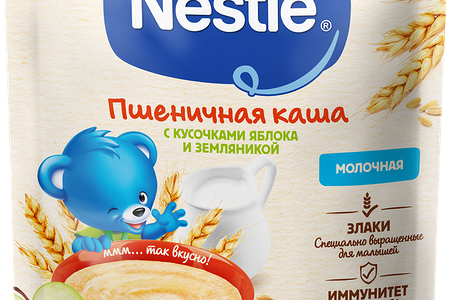 Каша пшеничная NESTLE молочная, с кусочками яблока и земляникой, с 8 месяцев доставка