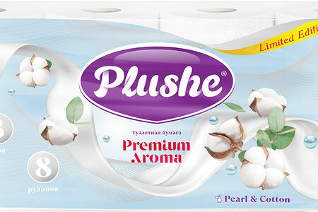 Туалетная бумага Plushe Premium Aroma Жемчуг и Хлопок 3 слоя 8 рулонов доставка