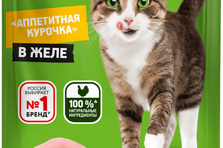 Влажный корм KITEKAT™ для взрослых кошек со вкусом курицы в желе «Аппетитная курочка», 85г доставка