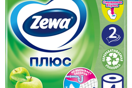 Туалетная бумага Zewa Плюс зеленое яблоко двухслойная, 4 рулона доставка