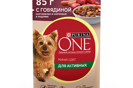 Влажный корм Purina ONE Мини для активных взрослых собак мелких и карликовых пород, с говядиной, картофелем и морковью в подливе 85 г доставка