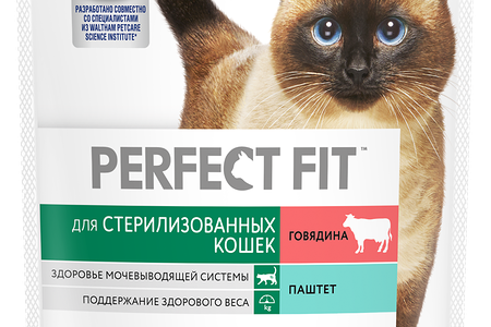 Влажный полнорационный корм PERFECT FIT для стерилизованных кошек паштет с говядиной, 75г доставка