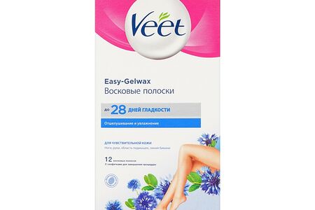 Восковые полоски для депиляции Veet Easy gel-wax для чувствительной кожи с ароматом василька 12шт доставка