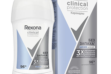 Део-стик `REXONA` CLINICAL PROTECTION без запаха 96ч (гипоаллергенный) 40 мл доставка