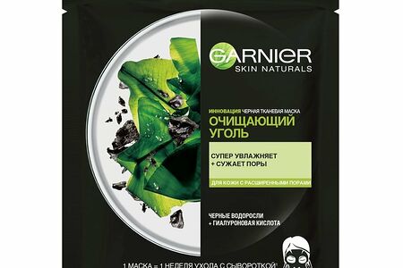 Garnier Черная тканевая маска для лица "Очищающий Уголь + Черные водоросли" с гиалуроновой кислотой, увлажняющая сужающая поры, 28 г доставка