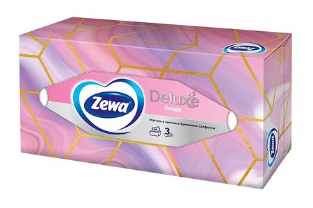 Салфетки бумажные Косметические Zewa Deluxe Дизайн 3-слойные 90 шт., дизайн в ассортименте доставка
